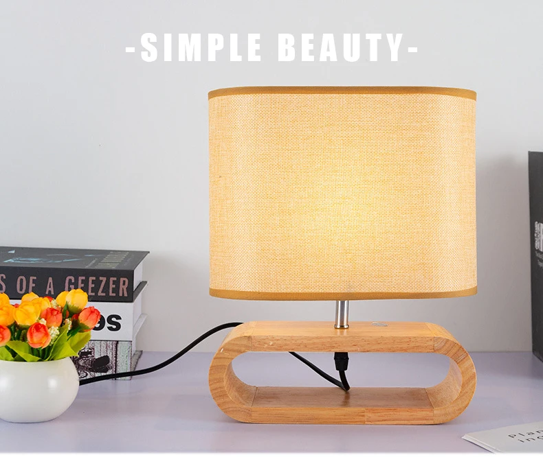 Nordic Wooden Table Lamp Creative Modern Bedroom Bedside LED Light Living Room Hotel Japanese Study Table Lamp Linen Lampshade